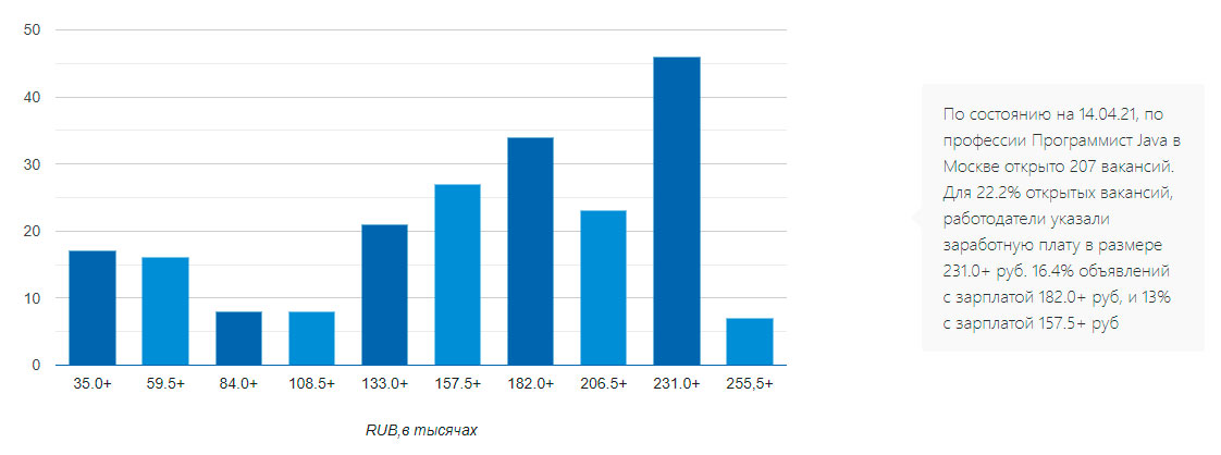 Java-программисты на данный момент одни из наиболее востребованных и высокооплачиваемых специалистов. В них заинтересованы банковские структуры, крупные производственные компании, госсектор. Запросы Java-разработчиков уровня Мiddle достигают 350 000 рублей и выше. При этом специалисты получают десятки предложений