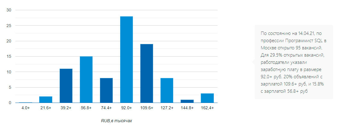 Уровень заработной платы программистов SQL за 2021 год:
