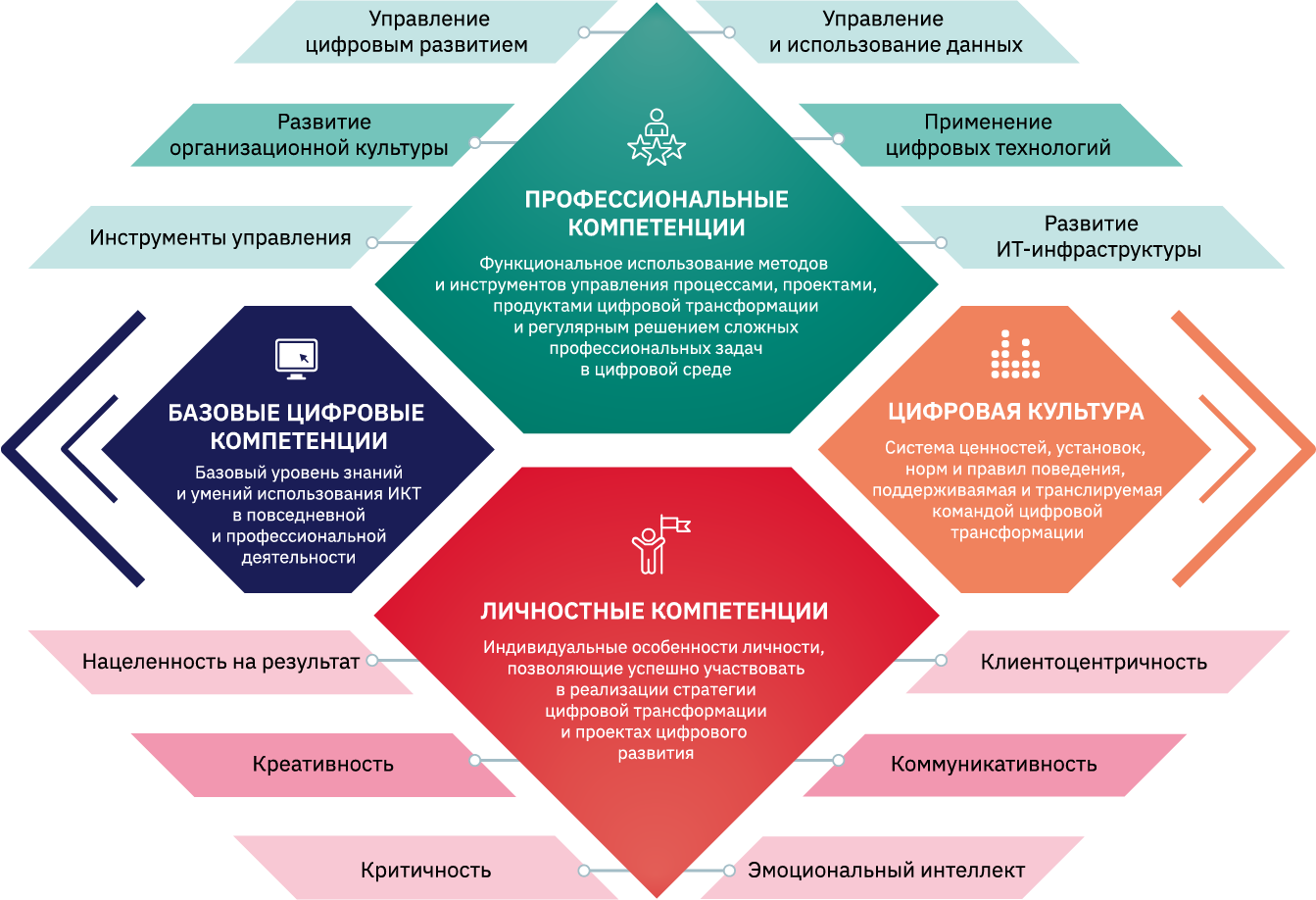 роли лидеров цифровой трансформации — драйверов изменений, проводников политики цифровизации, которые руководят оптимизацией, реинжинирингом процессов, проектированием и созданием новых цифровых услуг и продуктов