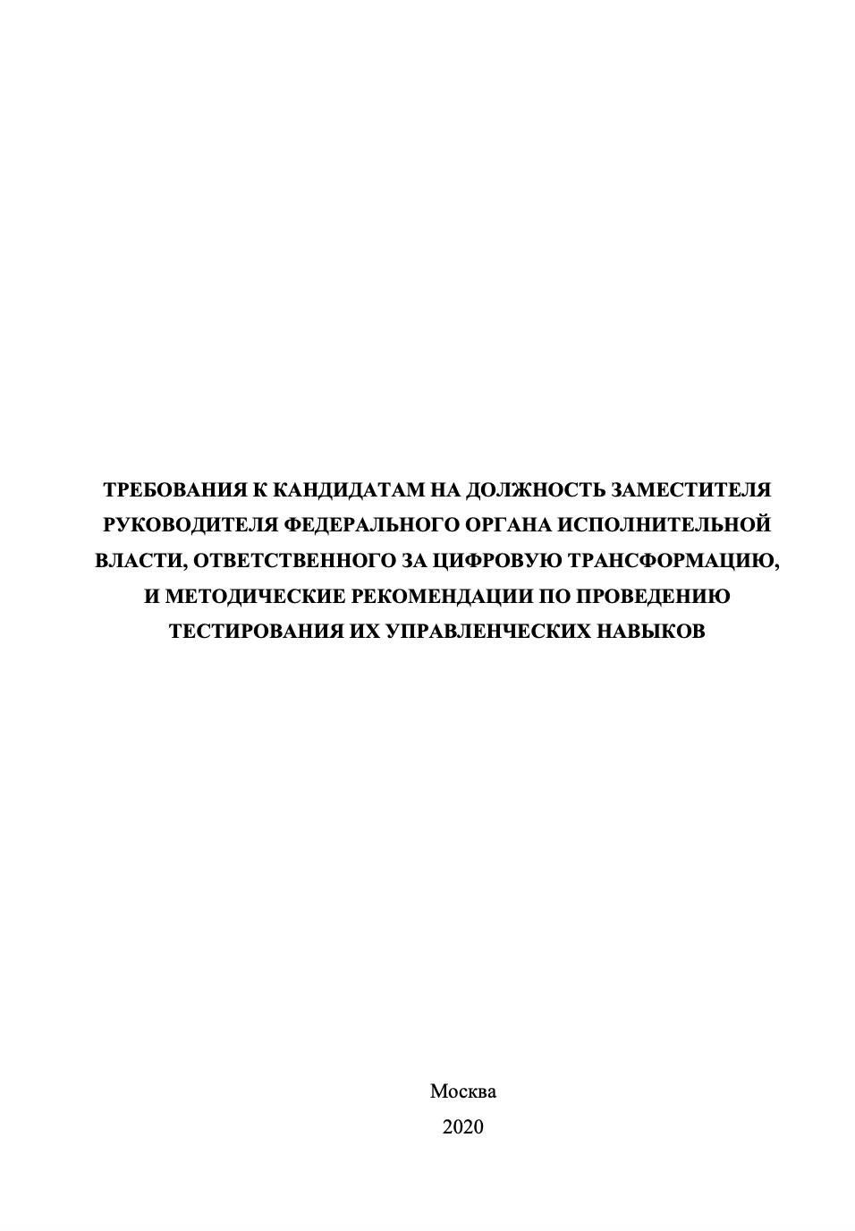 - Оценка подходит для высшего руководства организации, ее основные аспекты определены в документе Минцифры России «Требованиях к кандидатам на должность заместителя руководителя федерального органа исполнительной власти, ответственного за цифровую трансформацию, и методические рекомендации по проведению тестирования их управленческих навыков», доступны для скачивания и ознакомления.