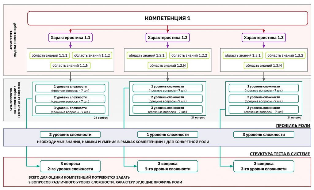 Вопросы разделены на три уровня сложности и гармонизированы как между компетенциями, так и, собственно, уровнями сложности